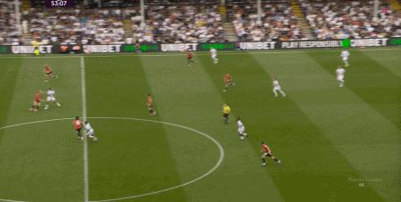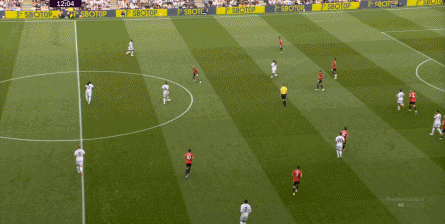 这一思路,当年索肖濒临下课的时候,在对阵热刺的时候就曾使用过,布鲁诺当时便打在麦克托米奈和弗雷德的身侧: