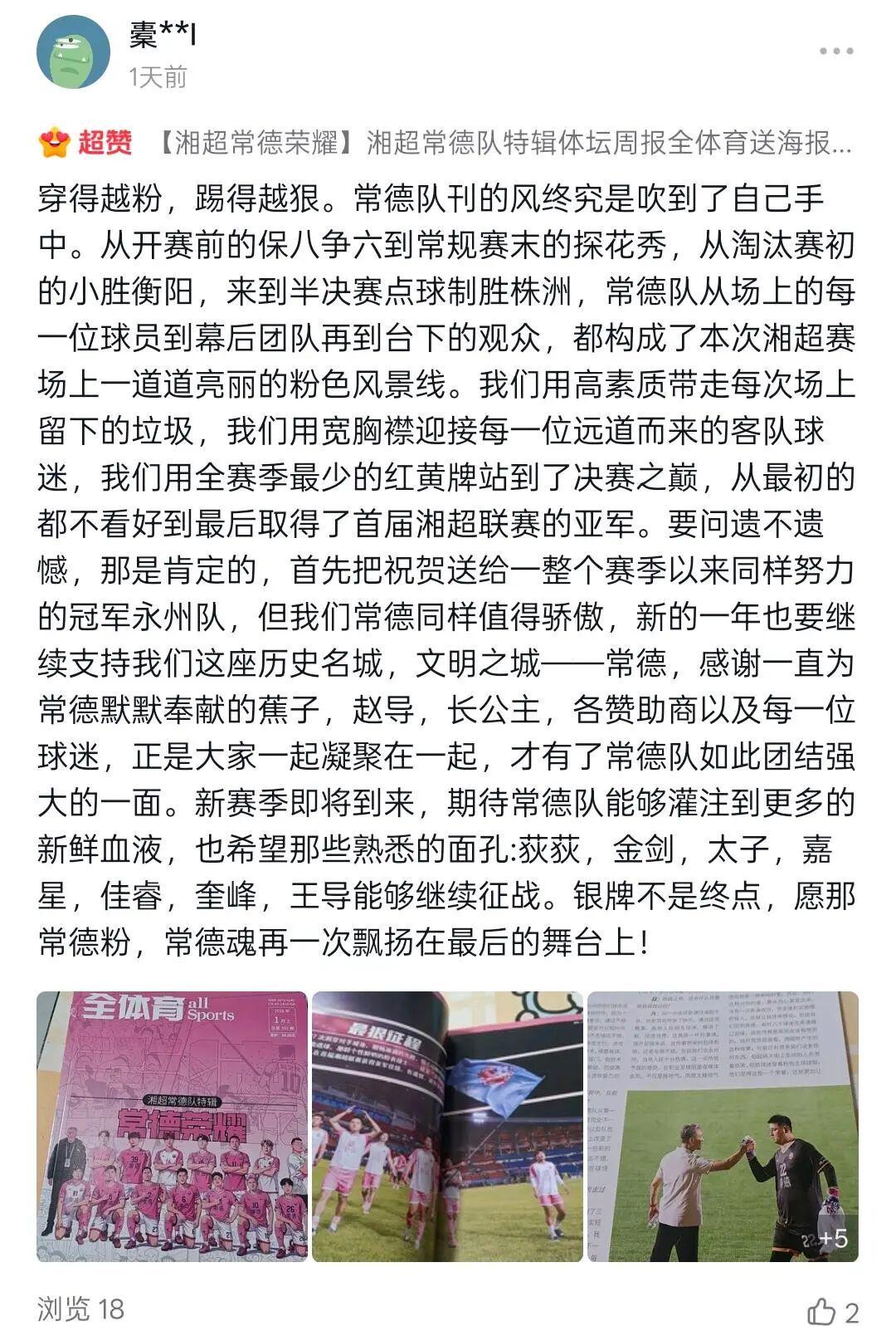“人还没到家,队刊先到了,在外打拼的常德人,就用它弥补没能到现场看球的遗憾”