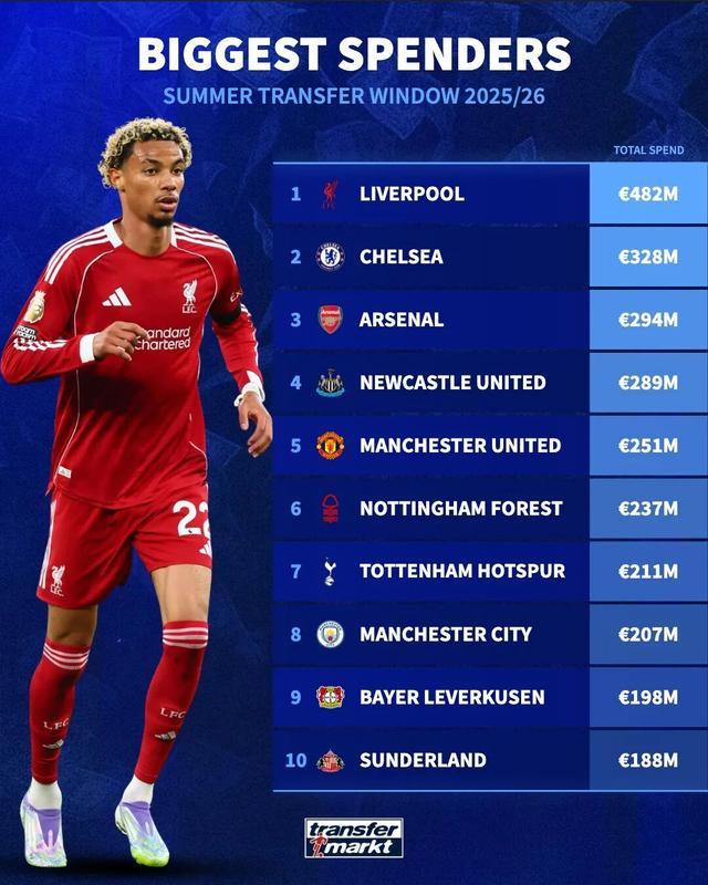 除了联赛投资总额,30个投资超1亿欧元的俱乐部英超占了14家,欧陆四大联赛仅11家,英超还包揽了俱乐部投资榜前8名。今夏投资超2亿欧元的8家俱乐部,全部来自英超。甚至斯特拉斯堡这样进入投资“1亿+”集团的俱乐部,竟然都只是切尔西在法甲的子俱乐部,很大程度成为蓝军资本流转的“工具俱乐部”。