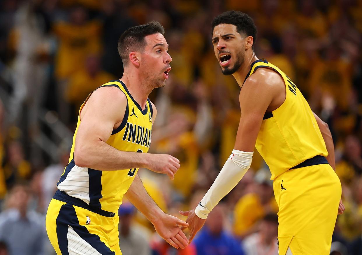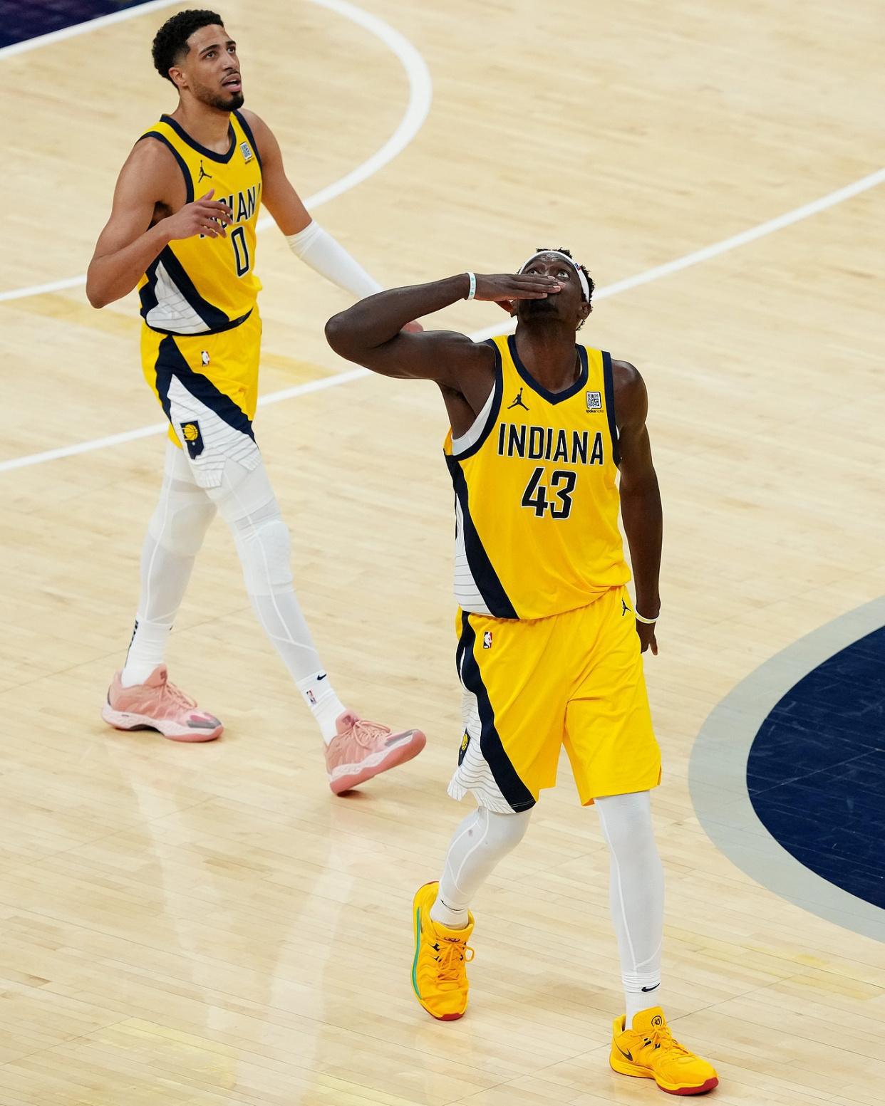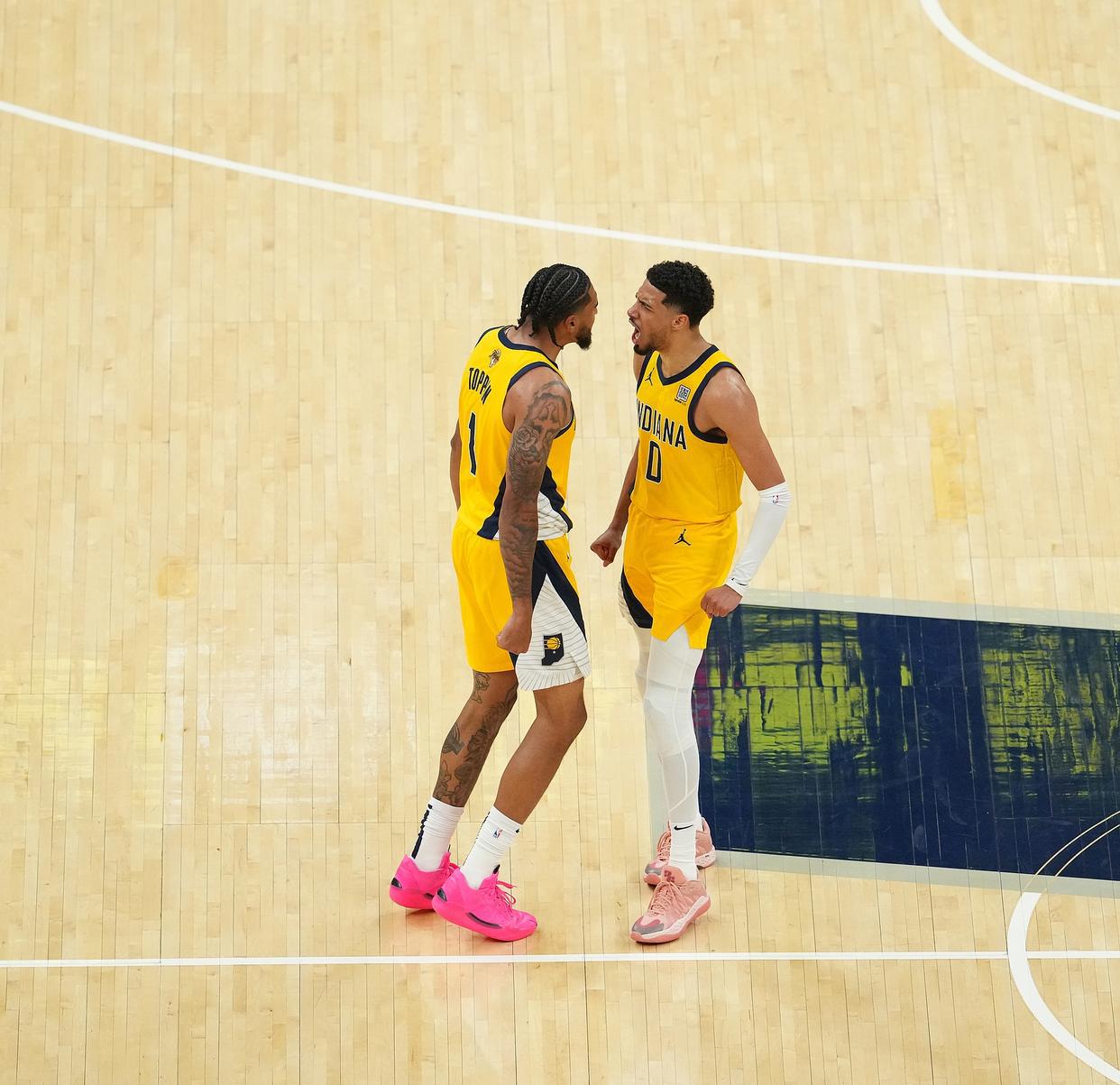 哈利伯顿与托平在场上庆祝